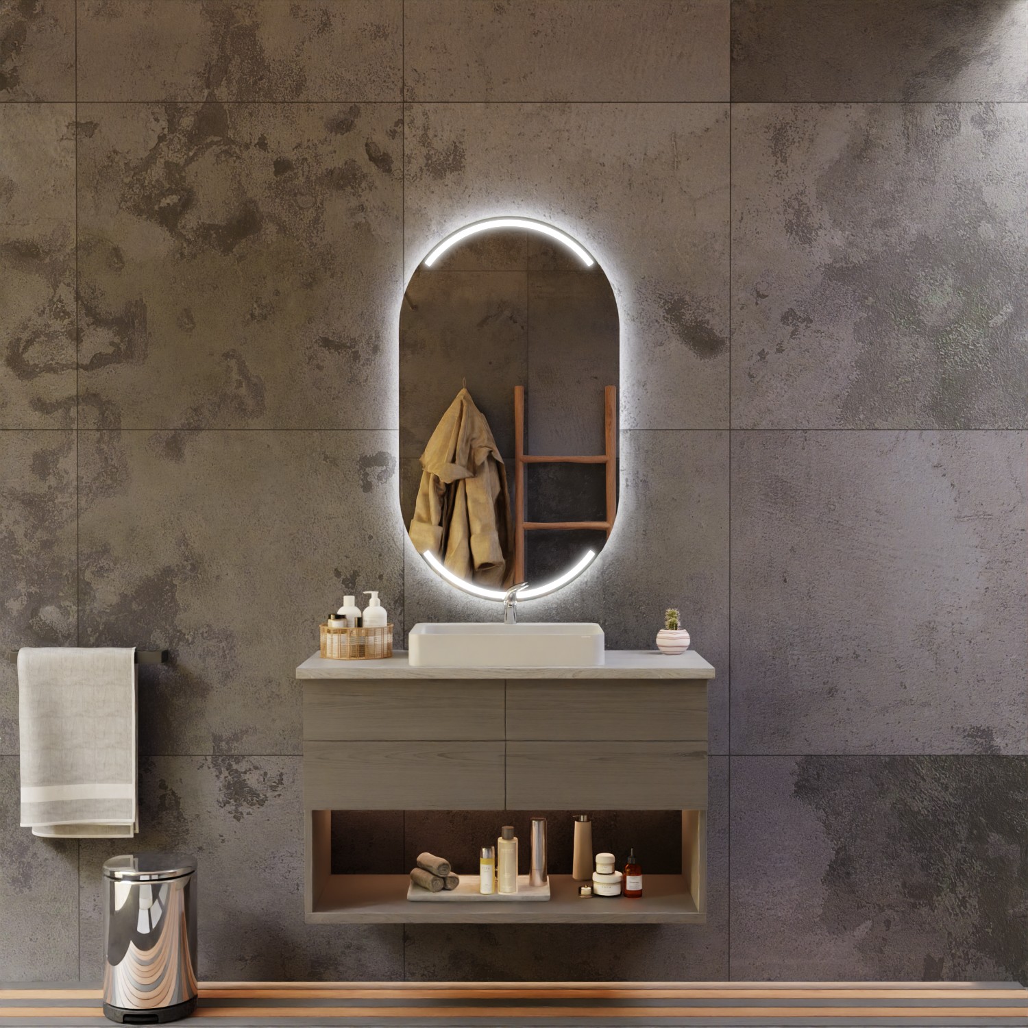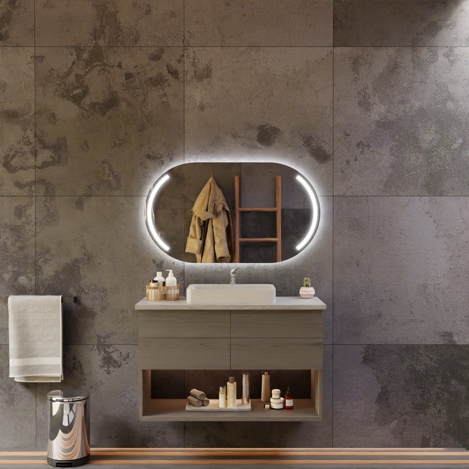 Der Infrarotsensor ist unten montiert und die Beleuchtung des Spiegels lässt sich durch eine Handbewegung ein- und ausschalten. Der Sensor muss nicht berührt werden.