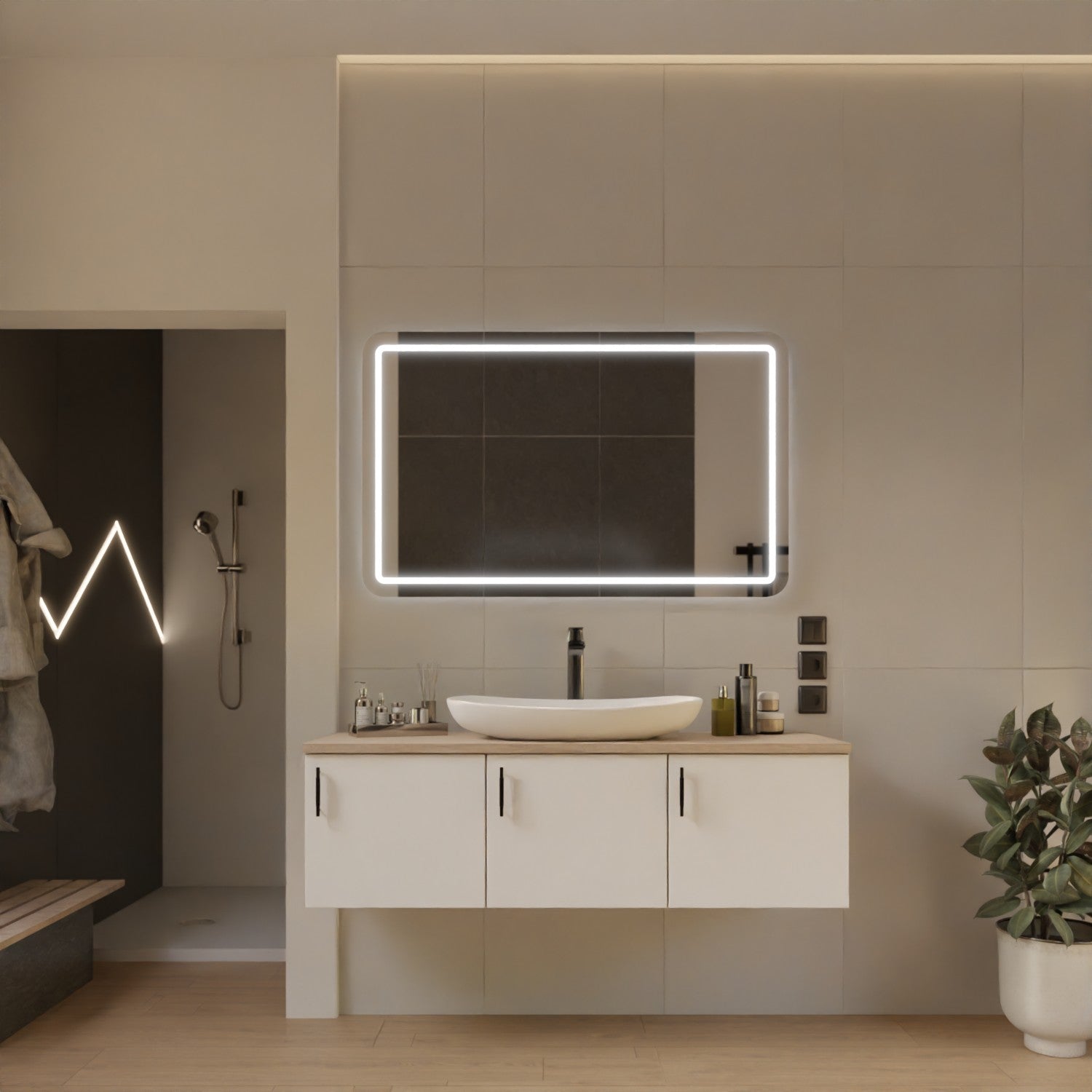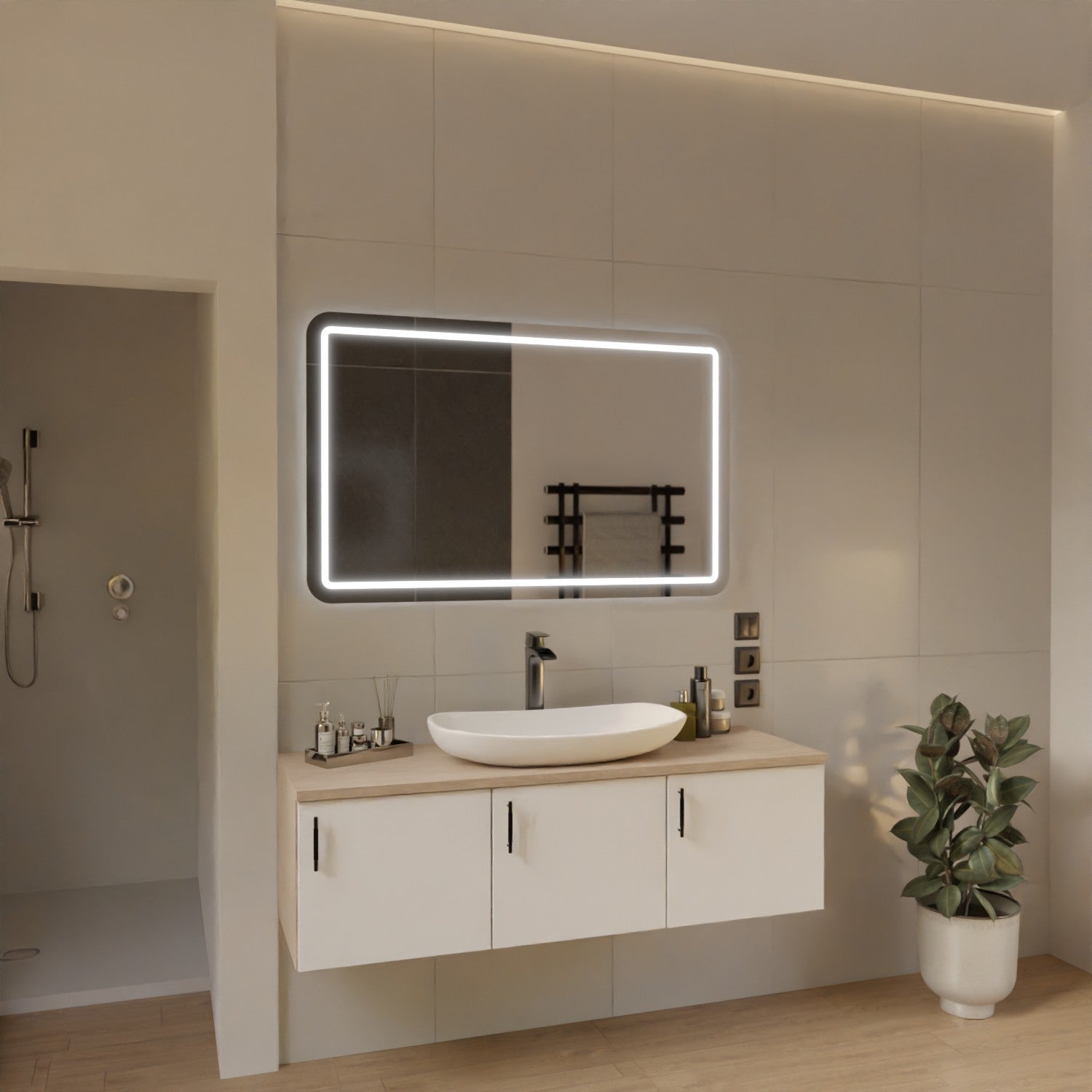 Dank der stetig wachsenden Zufriedenheit unserer Kundinnen und Kunden erweitern wir laufend unser Sortiment. Unser Ziel: Ihnen künftig ein noch größeres Angebot an maßgeschneiderten Lösungen zu bieten – vom Spiegel bis zur kompletten Badezimmereinrichtung.