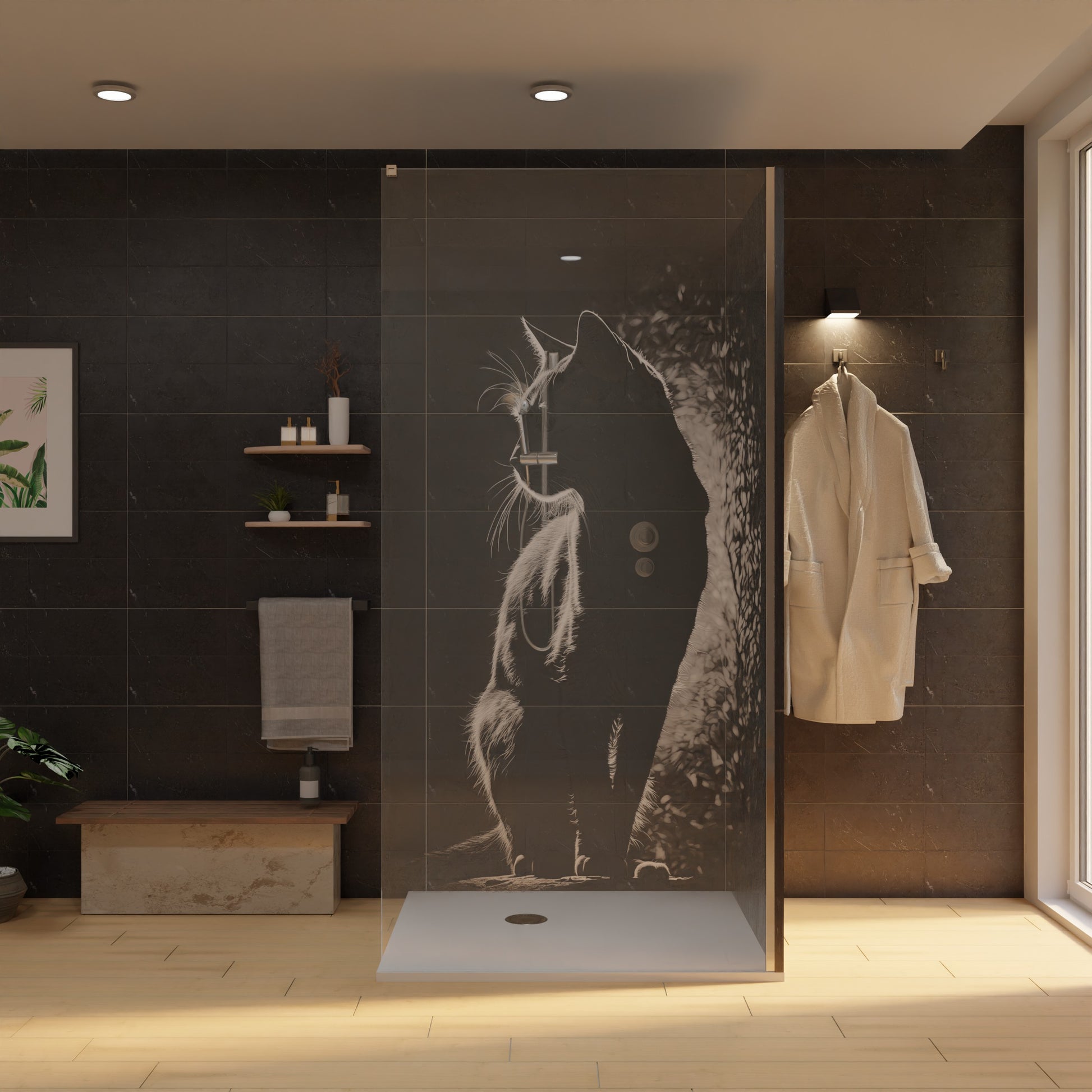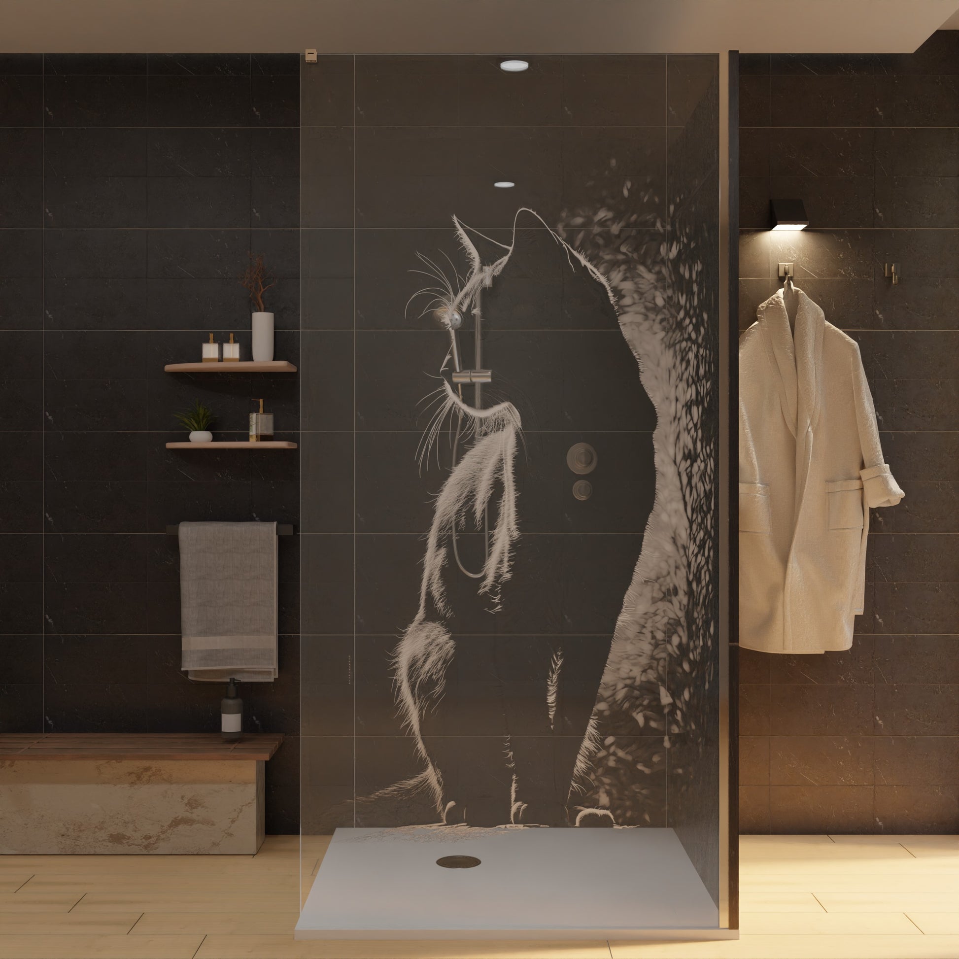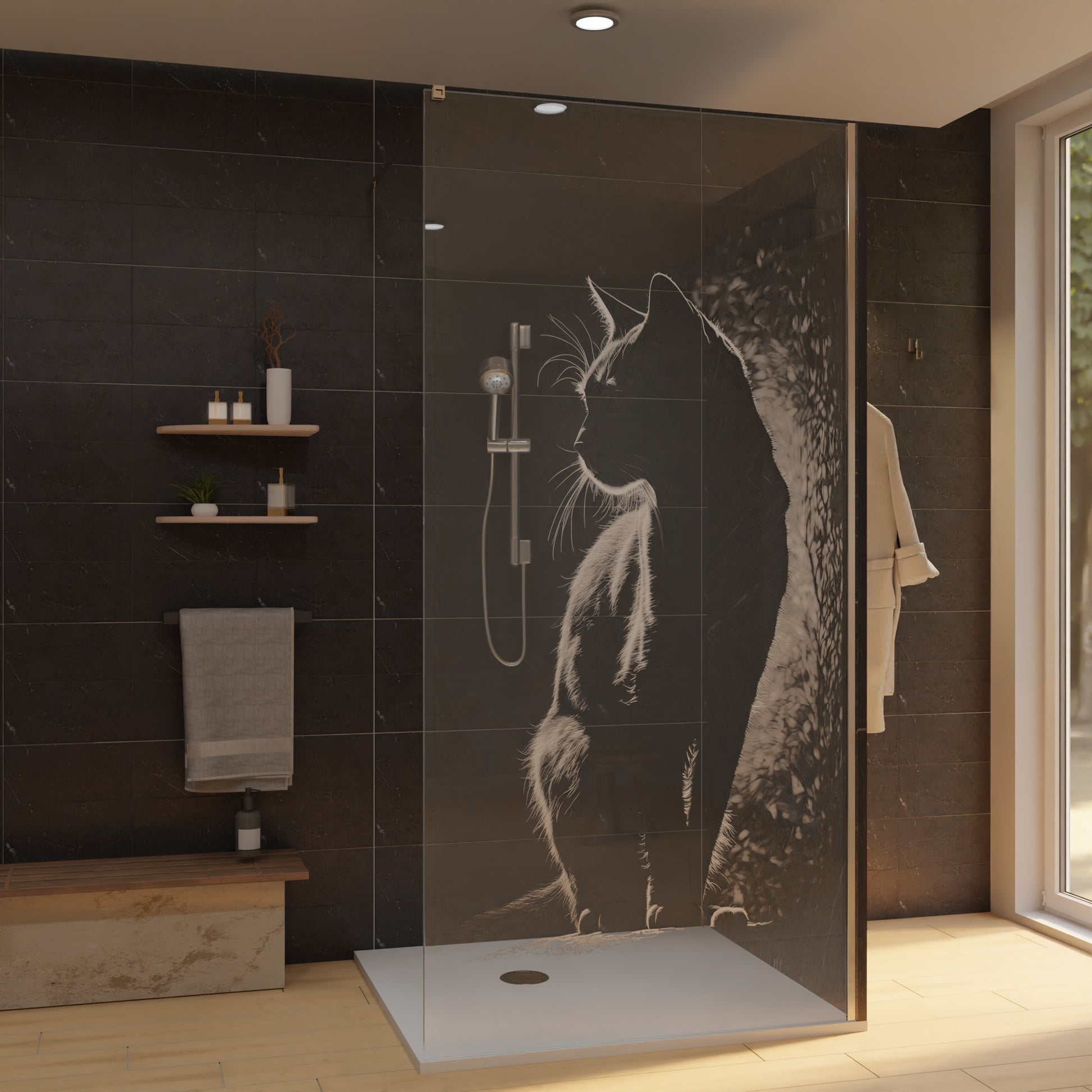 Duschwand mit Laser Motiv - Katze