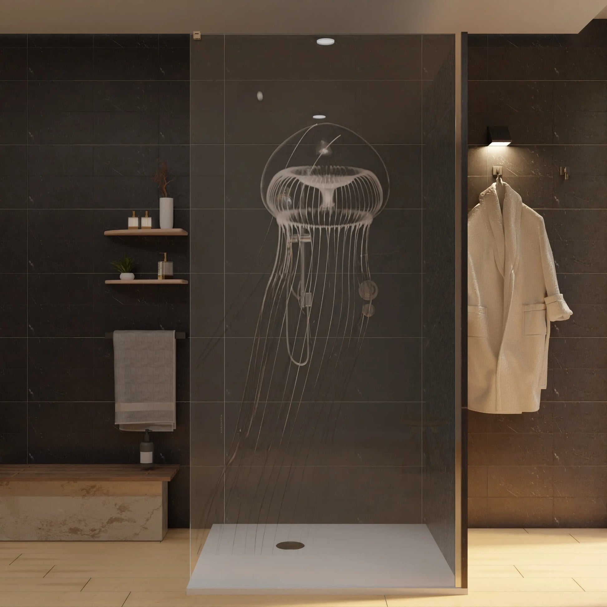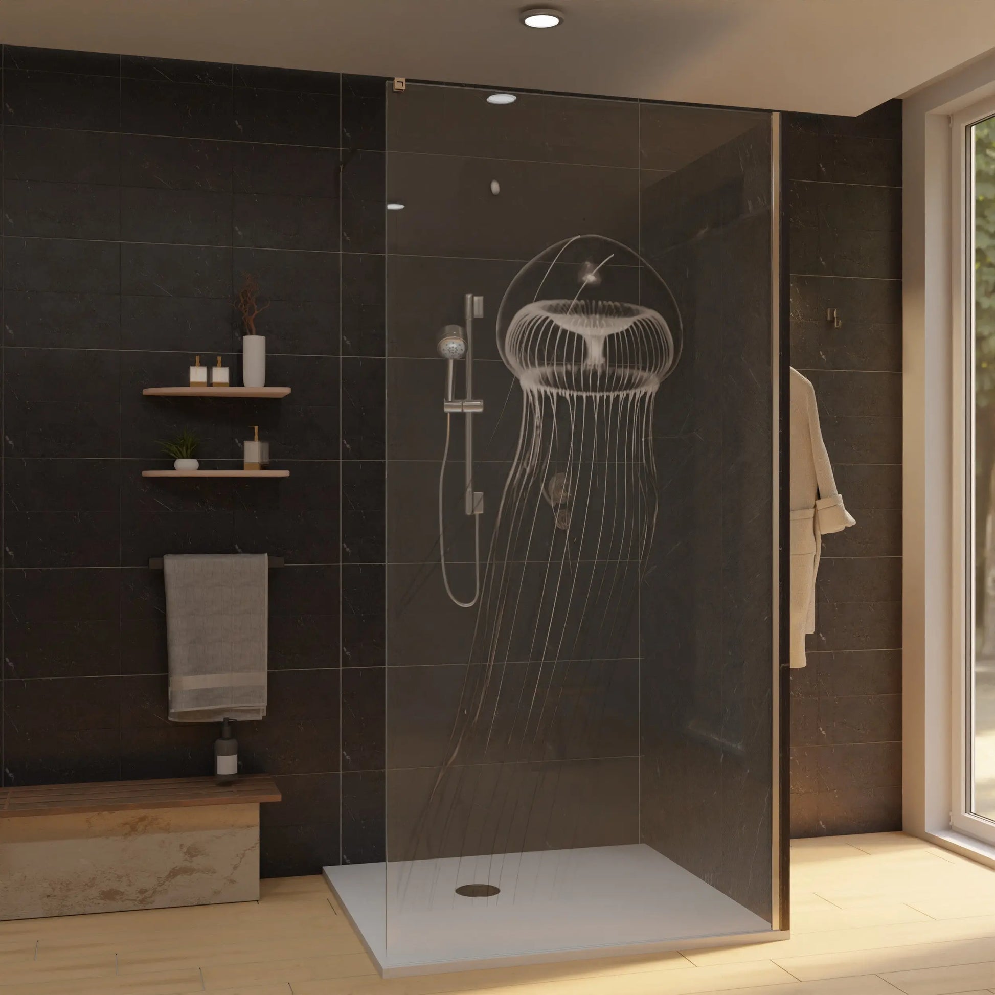 Duschwand mit Laser Motiv - Qualle