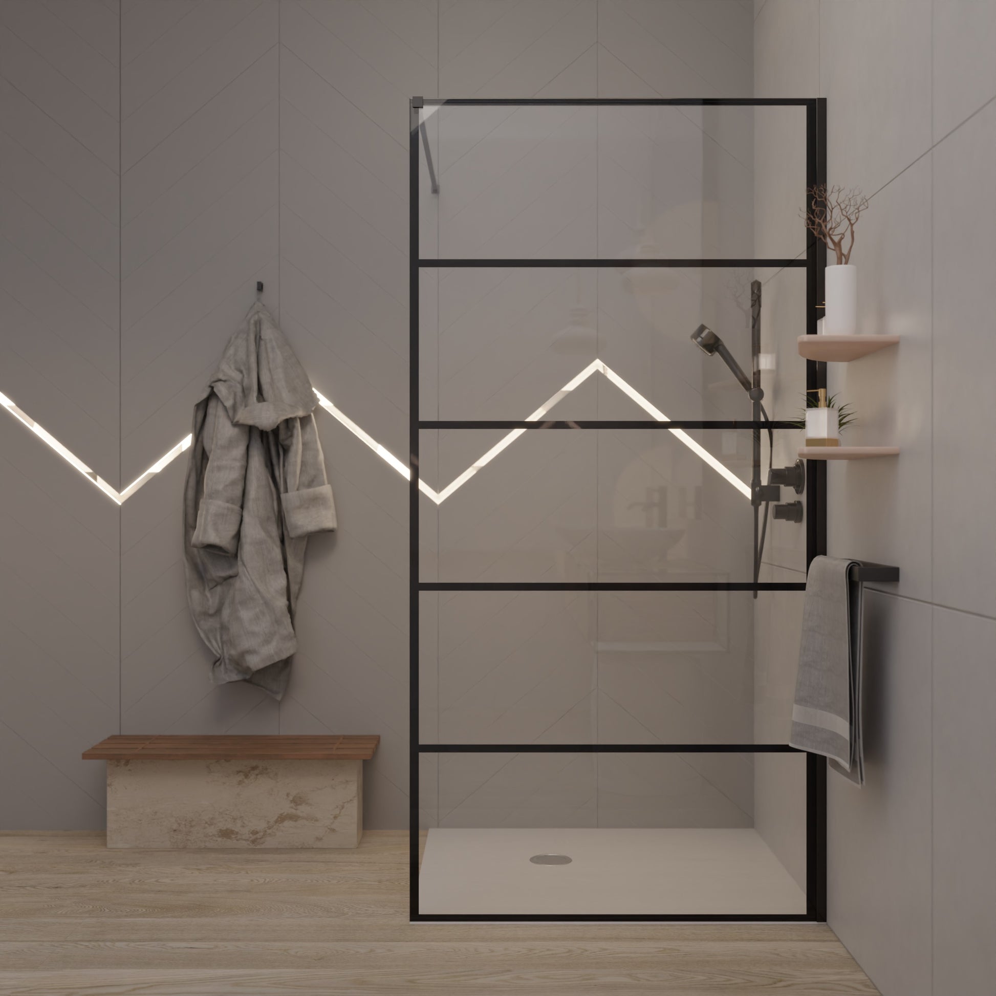 Duschwand mit schwarzem Rahmen - Diego