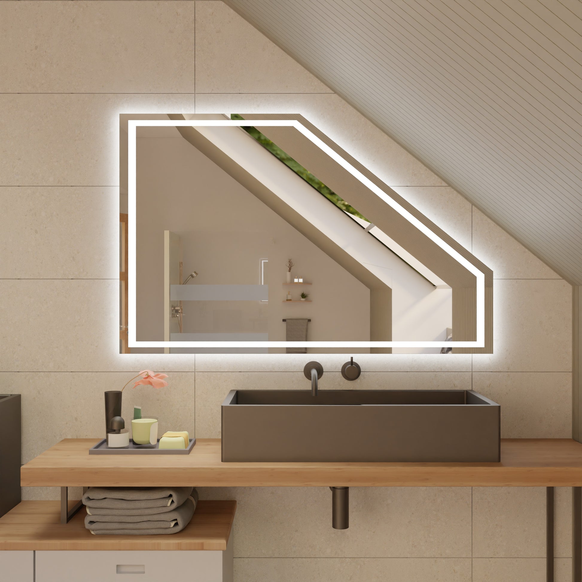 Dank der stetig wachsenden Zufriedenheit unserer Kundinnen und Kunden erweitern wir laufend unser Sortiment. Unser Ziel: Ihnen künftig ein noch größeres Angebot an maßgeschneiderten Lösungen zu bieten – vom Spiegel bis zur kompletten Badezimmereinrichtung.