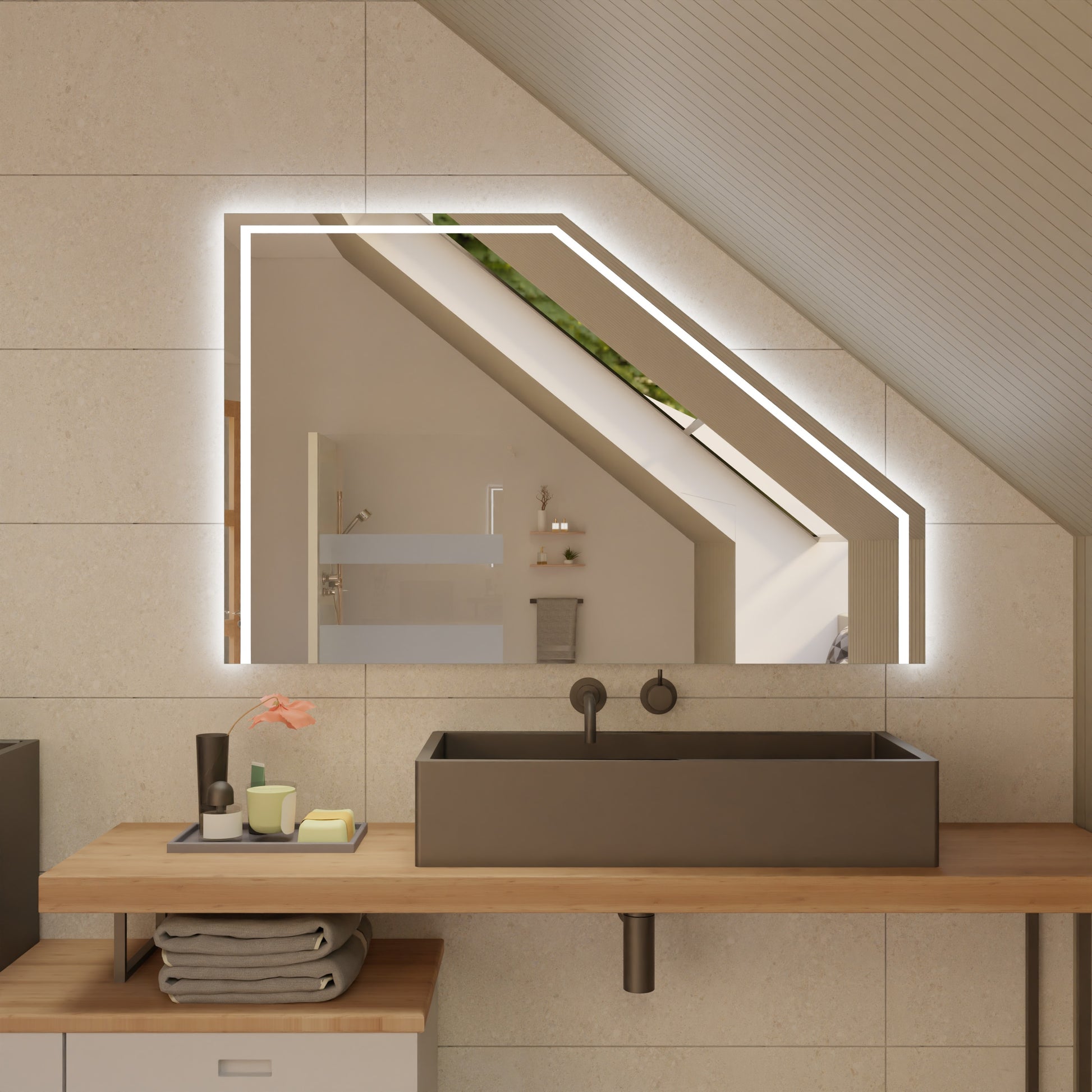 Dank der stetig wachsenden Zufriedenheit unserer Kundinnen und Kunden erweitern wir laufend unser Sortiment. Unser Ziel: Ihnen künftig ein noch größeres Angebot an maßgeschneiderten Lösungen zu bieten – vom Spiegel bis zur kompletten Badezimmereinrichtung.