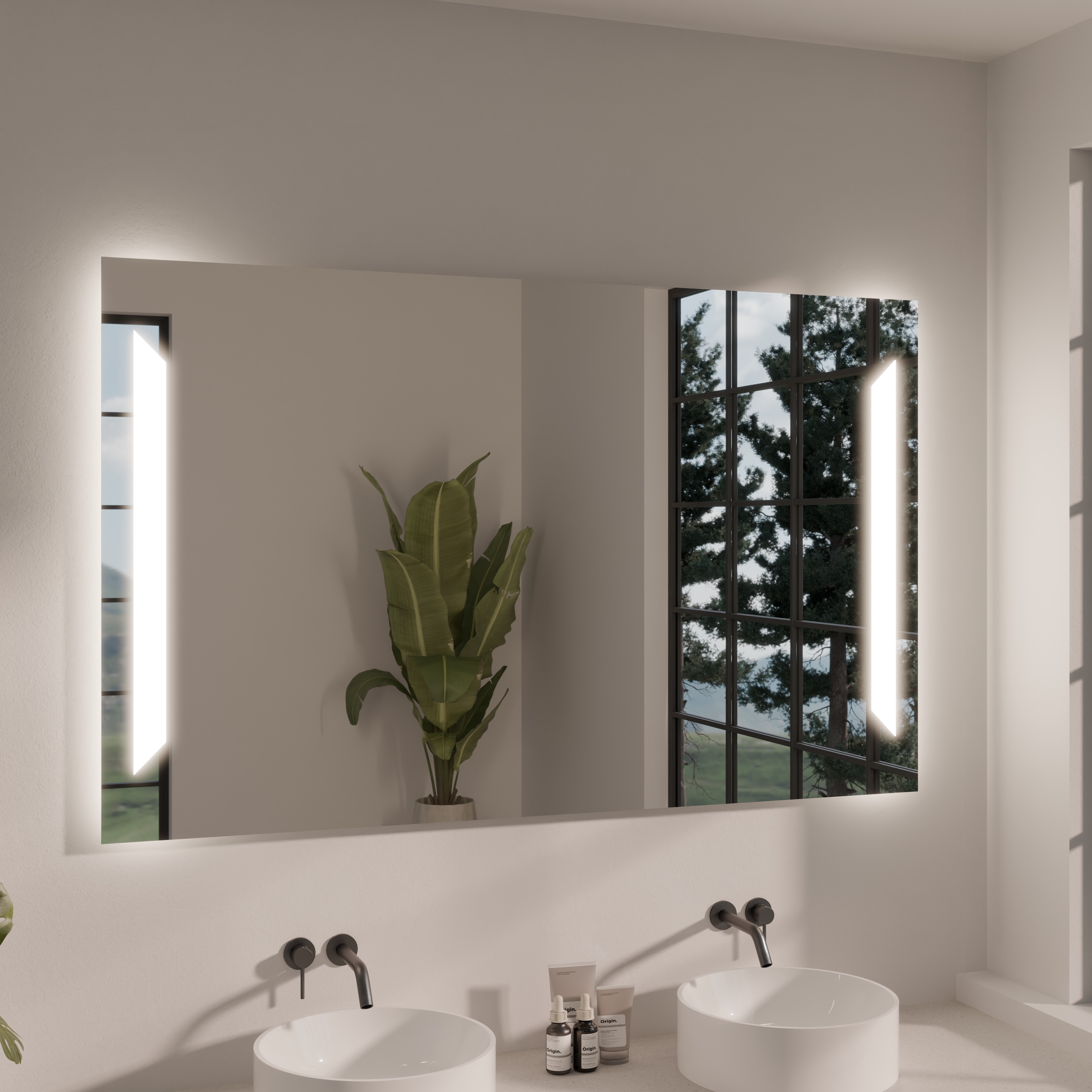 - Warm- und Kaltweiß inkl. Doppel-Touch-Sensor: Es befinden sich auf der Spiegeloberfläche zwei Touch-Sensoren. Der eine Sensor ist für das warmweiße und der andere für das kaltweiße Licht. Wenn beide Sensoren eingeschaltet sind entsteht eine Art Tageslichtweiß. Der Stromverbrauch steigt dadurch allerdings. Bei dieser Option ist die Beleuchtung nicht dimmbar. Für den Fall, dass die Stromzufuhr unterbrochen wird, gibt es keine Memory-Funktion.