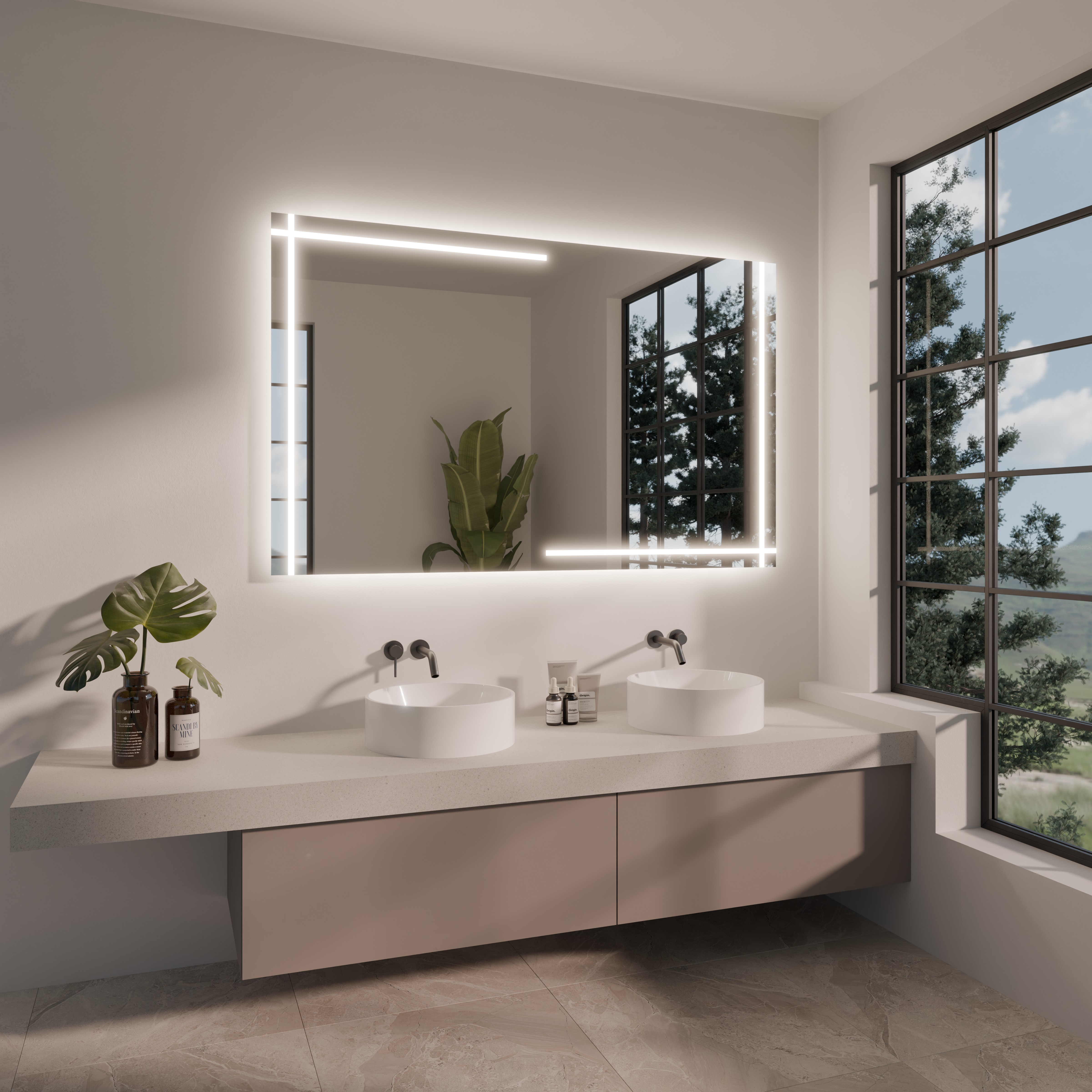 „LED-Band doppelt“ heißt, dass der Spiegel mit doppelter Anzahl an LED ausgestattet wird. Die Leuchtdioden-Bänder werden parallel zueinander verlegt und Sie profitieren von mehr Leuchtkraft und auch Helligkeit. Die Lichtauslässe bzw. Satinierung wird nicht beeinflusst.